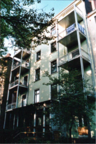 Die Eigentümer dieser aus den sechziger Jahren des letzten Jahrhunderts stammenden Siedlung ließen die vorhandenen bereits geschädigten und wegen des un-günstigen Schnittes nur eingeschränkt nutzbaren Balkone durch neue großzügige auf 4 Stützen ruhende Balkone ersetzen.